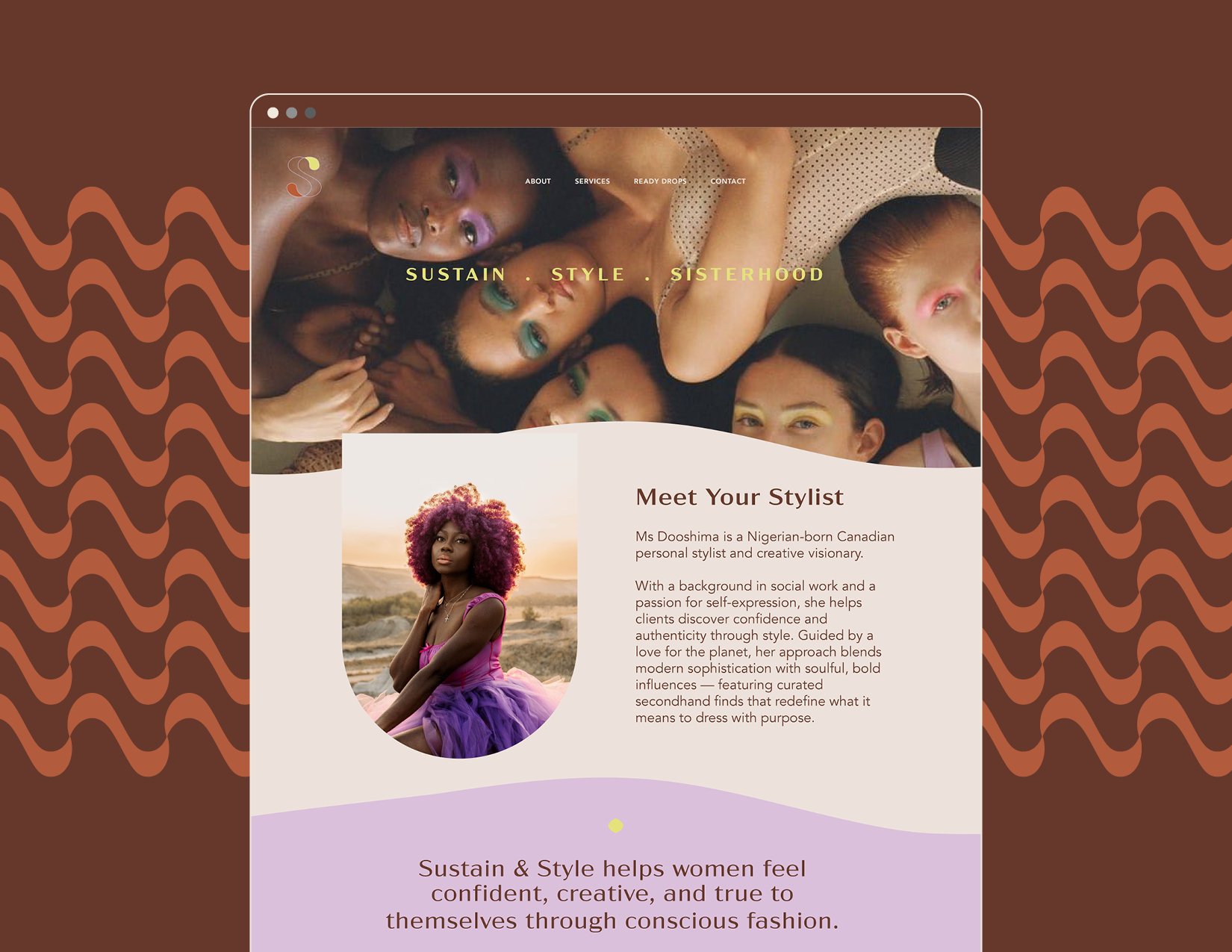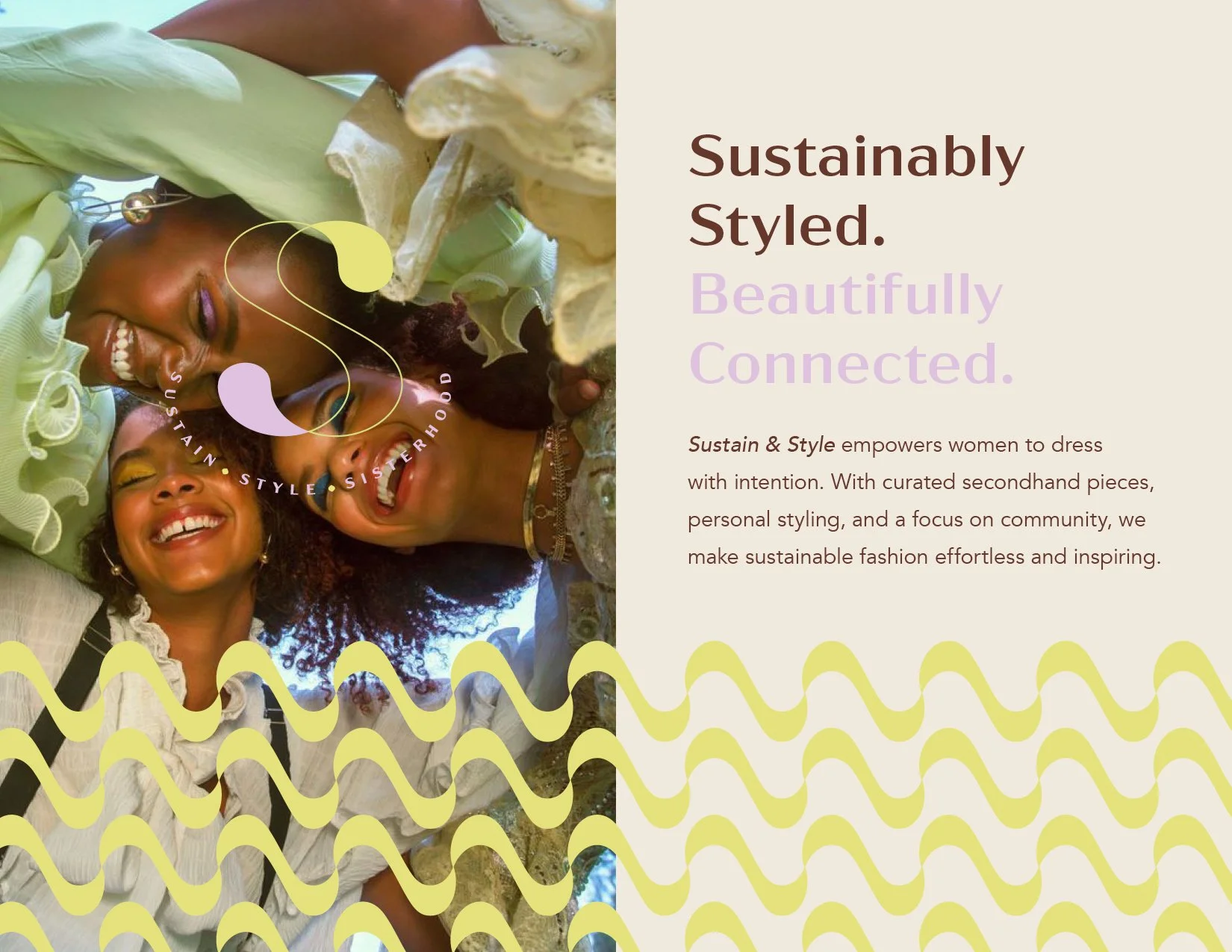 Sustain & Style is a conscious fashion brand created to help career women feel confident, connected, and truly themselves. Blending personal styling, thoughtfully curated secondhand pieces, and a strong sense of community, the brand reframes style as a meaningful, feel-good experience. Its visual identity—rooted in flowing, interwoven S forms and a vibrant, joyful palette—reflects connection, movement, and the beauty of dressing with purpose, for both people and the planet.